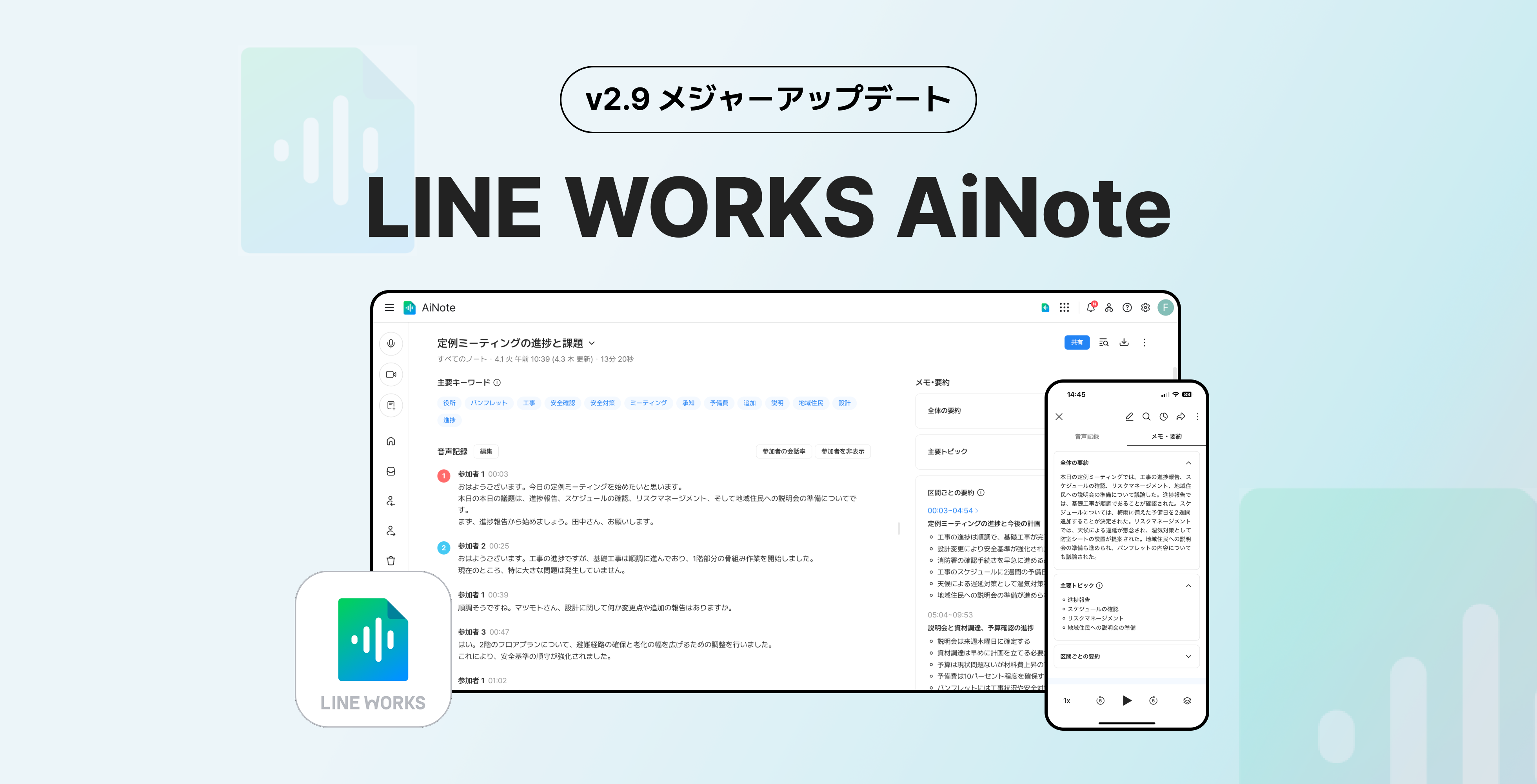 聞き逃しても安心。声が文字に残る