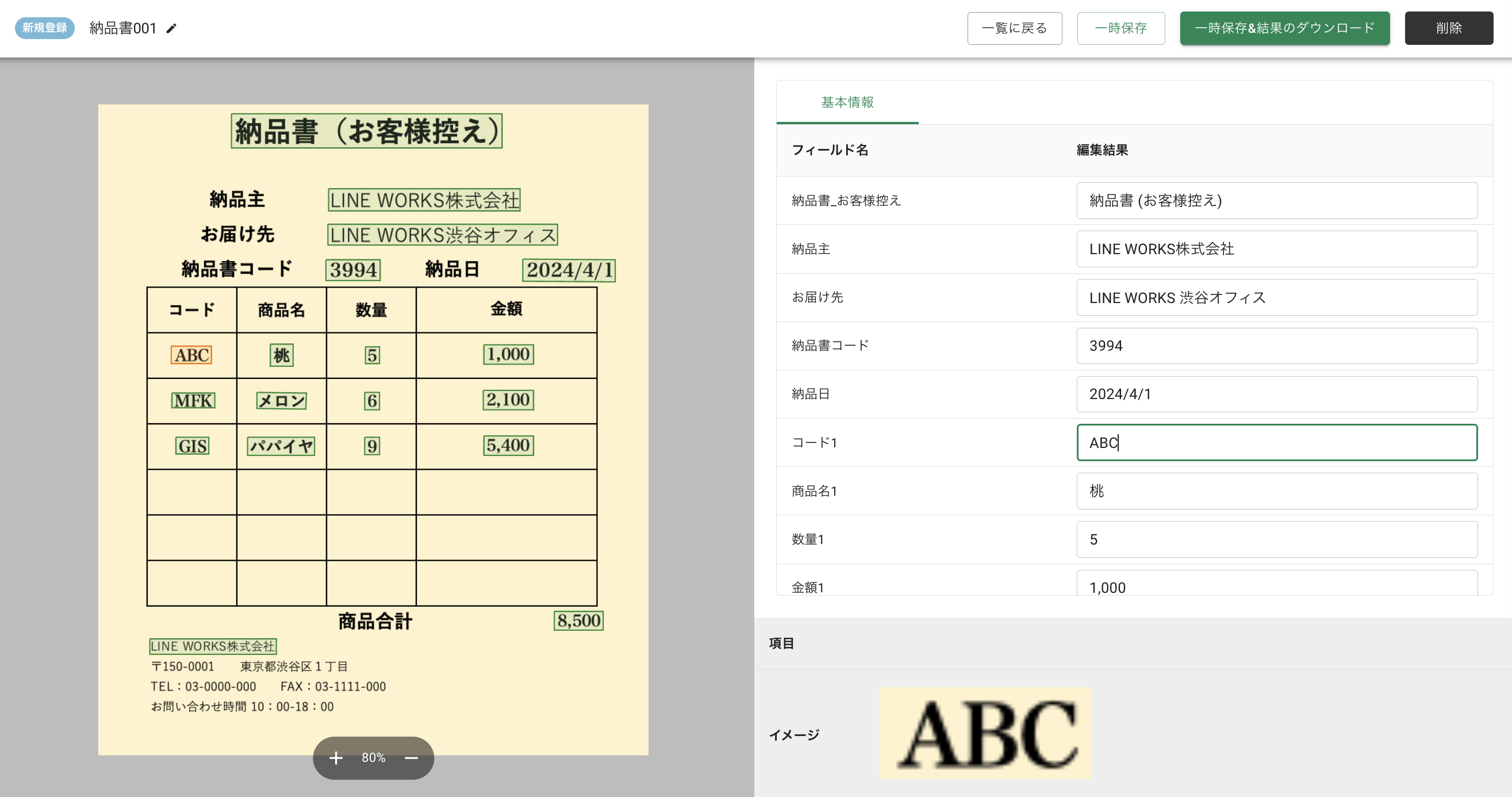 従来は紙と画面を見比べて確認をしていたものが、LINE WORKS OCRなら画面一つで読み取り結果を確認でき、さらに「視認性の良さ」が魅力です。