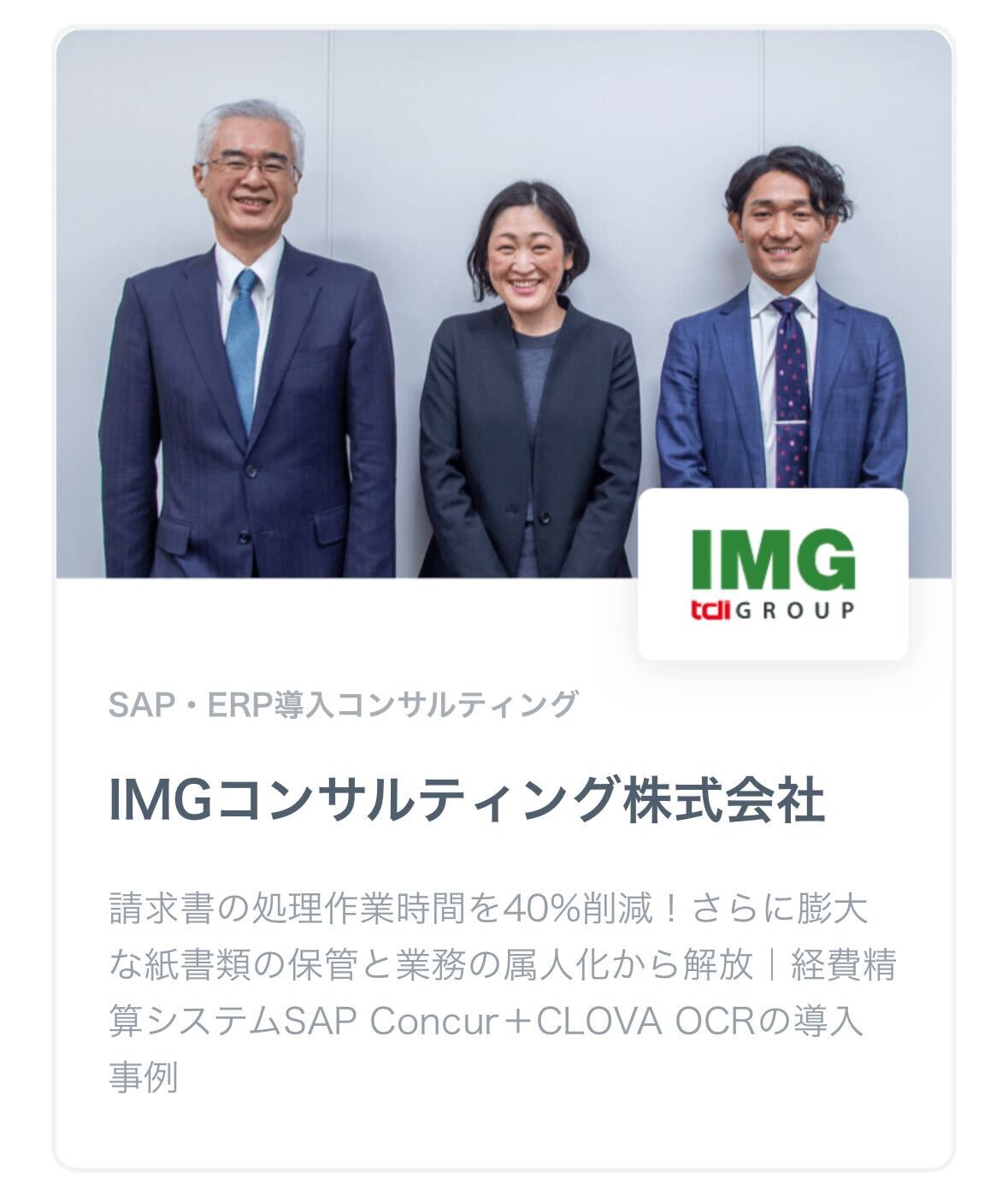 まずは請求書の処理時間を40%削減することに成功した、「IMGコンサルティング株式会社」の事例です。コア業務に取り組む時間の増加、提供価値の向上に繋がりました。