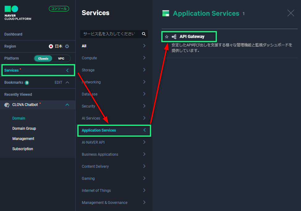 - 2. サイドメニューのServices > Application Servicesをクリックします