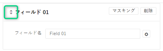 フィールド詳細エリアに表示される[↕]のボタンをドラッグし移動させて任意の位置に変更いただけます。