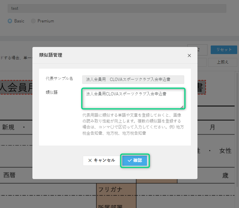 類似語登録が可能です。こちらで想定されるその他の見出しの表記を登録します。