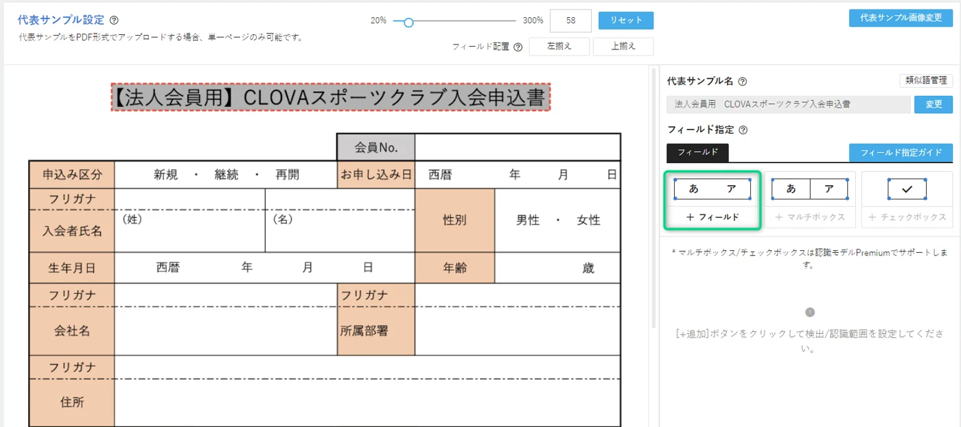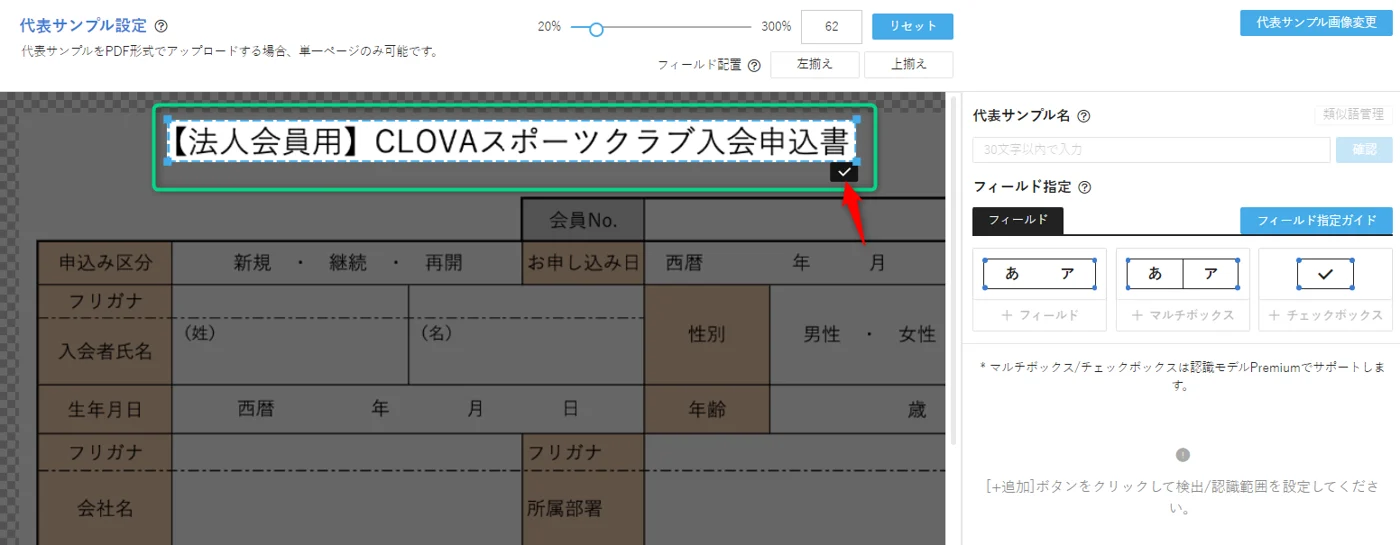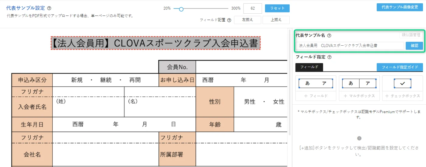 このステップでは、Template OCRの基本設定である代表サンプルとボックスの設定を行います。