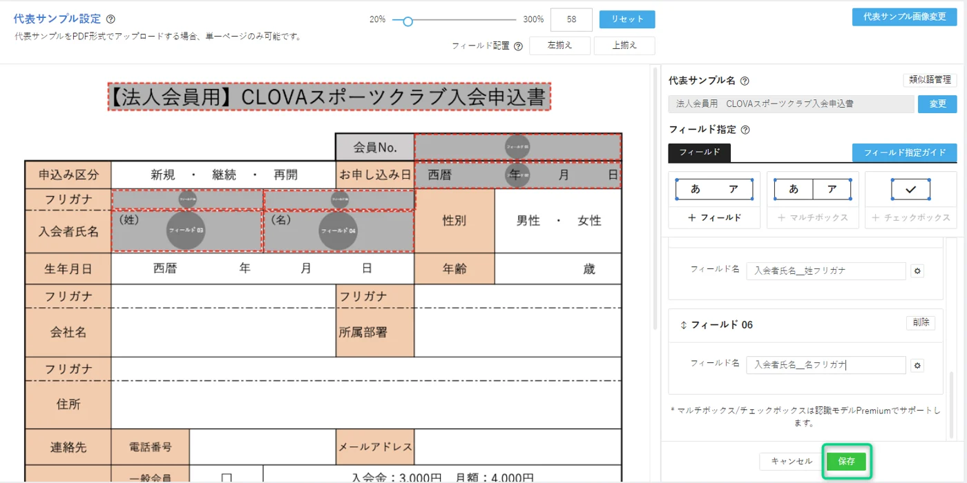フィールド名を入力後「保存」をクリックします。