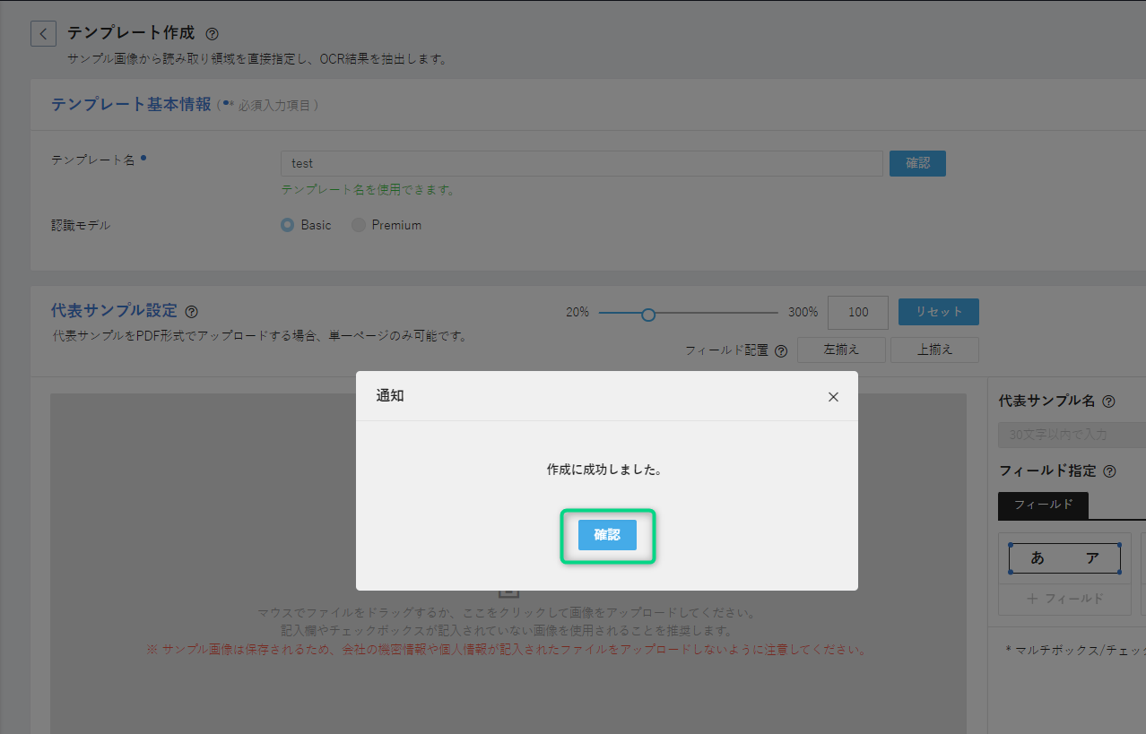代表サンプルは、認識結果の中に含まれるためどのテンプレートで読み取ったかを判断する要素としてご利用頂けます。