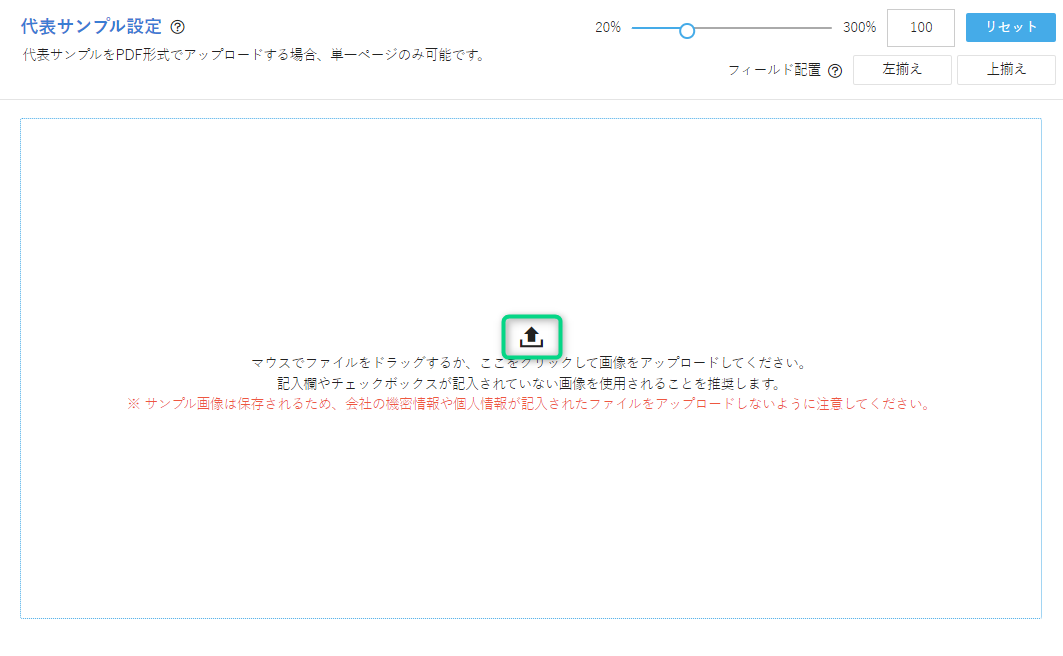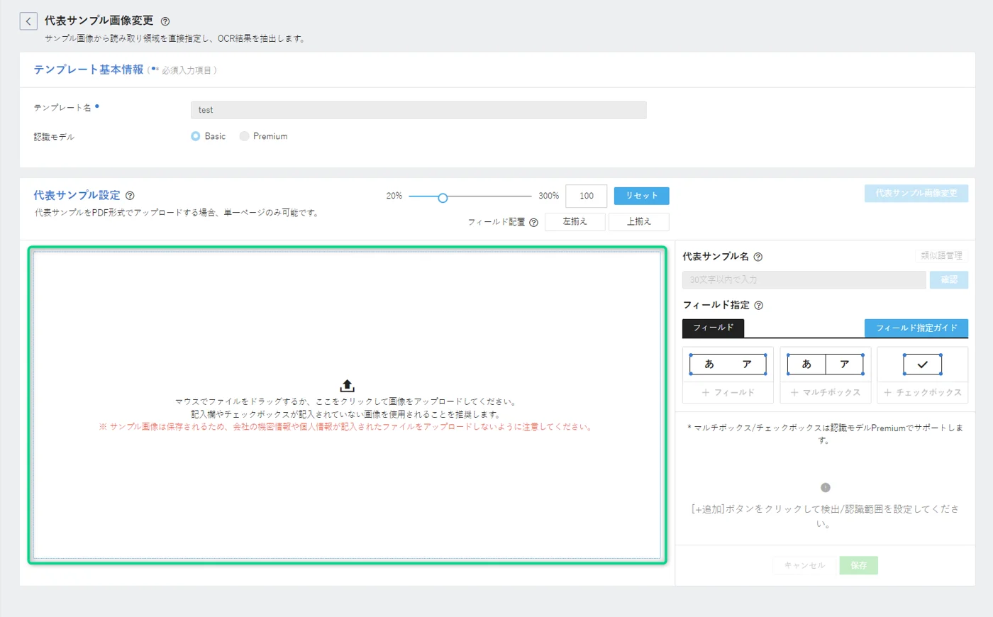 空白の状態の帳票画像(代表サンプル)に読み取りたい項目を設定したものをテンプレートと呼びます。