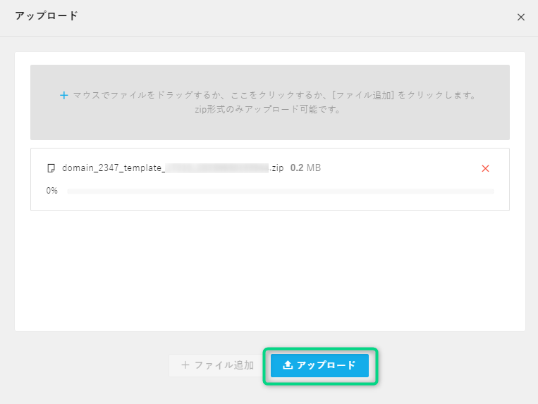 ファイルを添付したら、[アップロード] をクリック。
