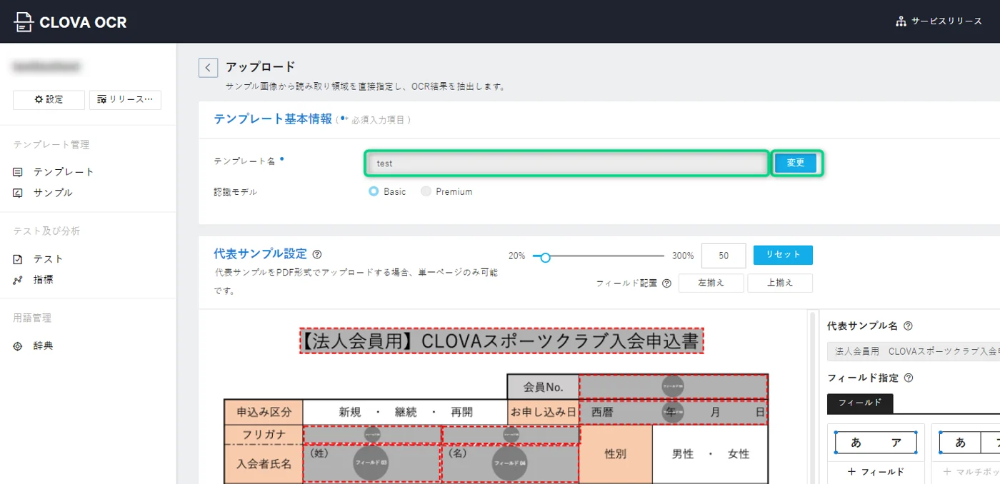 ※テンプレート名を変更する場合は、このタイミングで[変更]をクリックして変更。