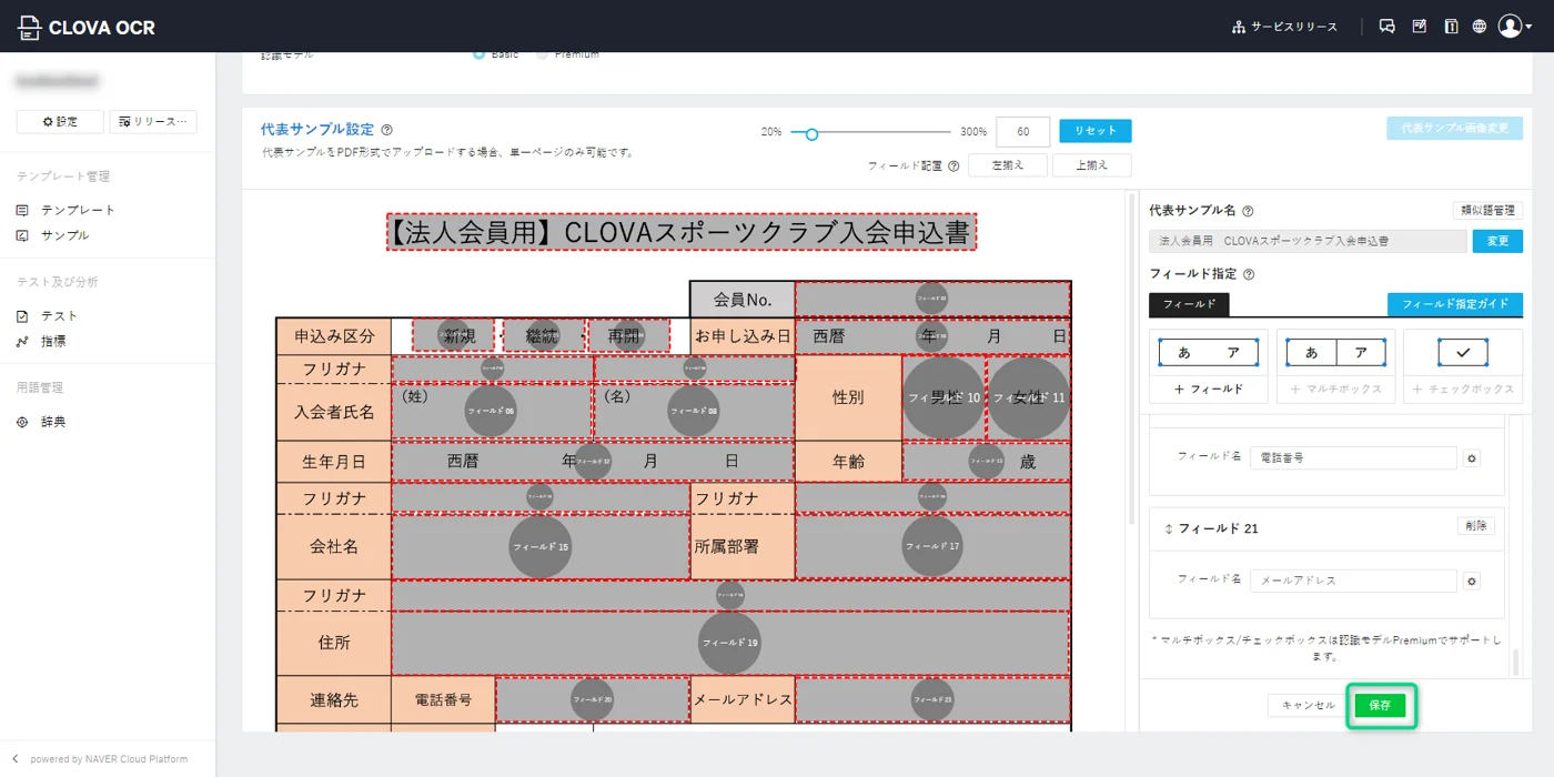[保存]を押した後はテンプレート名の変更ができませんのでご注意ください。