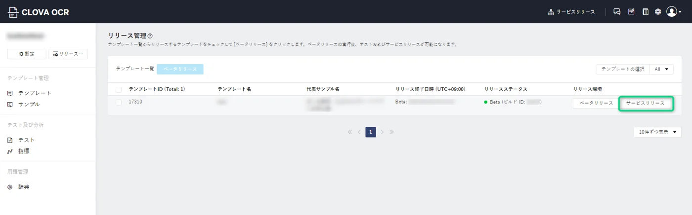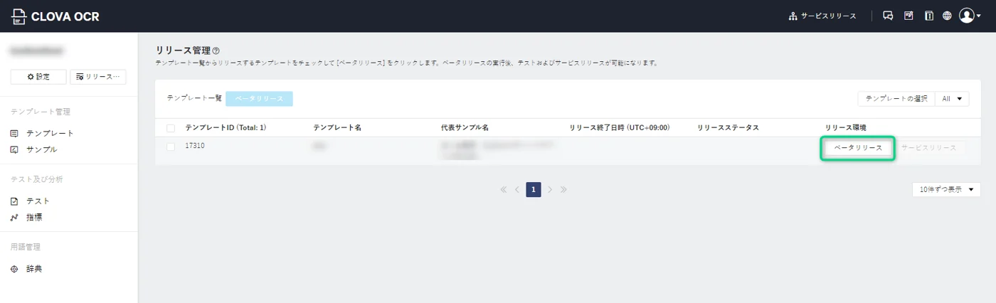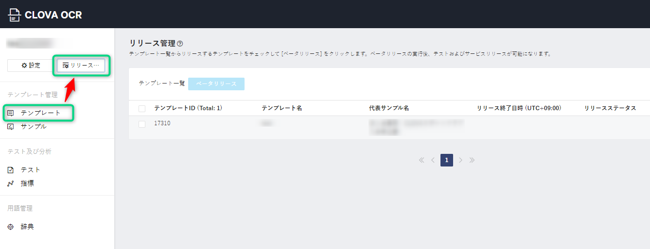 テンプレート] > [リリース]をクリック。
