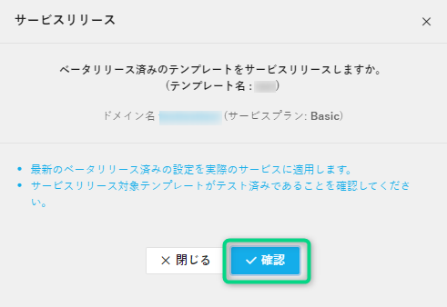 [サービスリリース] > [確認]をクリック。
