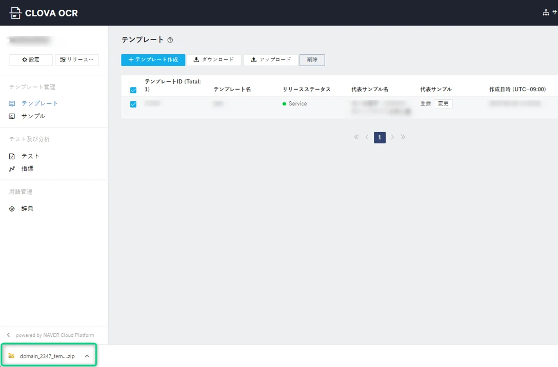 対象のテンプレートにチェックを入れ、[ダウンロード]をクリック。