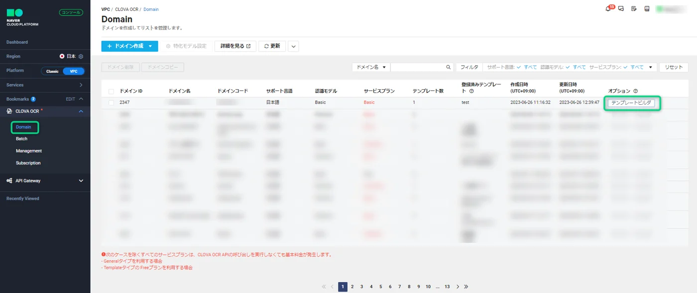 対象ドメインの[テンプレートビルダ]をクリック。