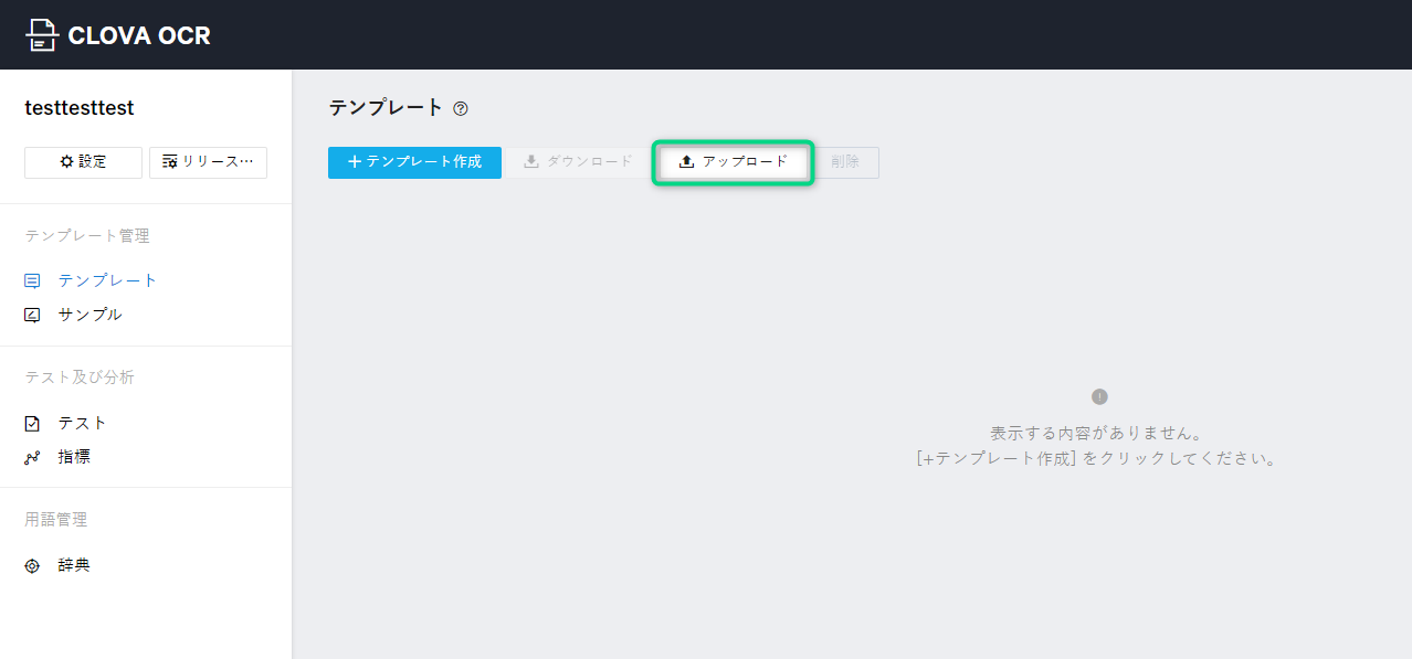 [テンプレート] > [アップロード]をクリック。