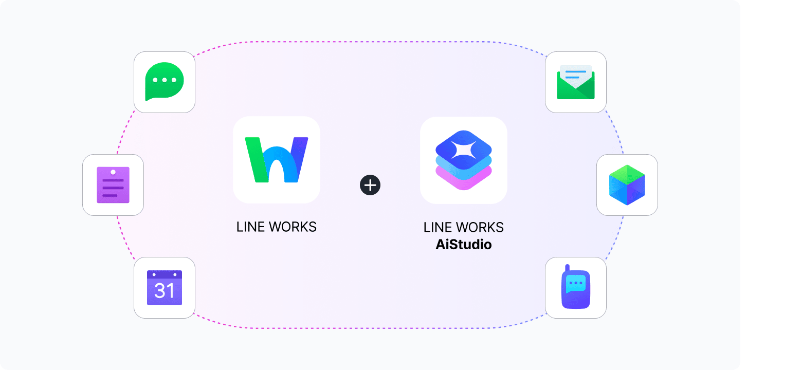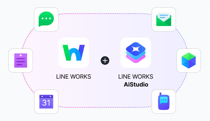LINE WORKS AiStudioはLINE WORKSのご契約がなくてもご利用が可能です。 ただし、LINE WORKSと併用いただくことでLINE WORKSと連携したさまざまなAI機能をご利用いただけます。