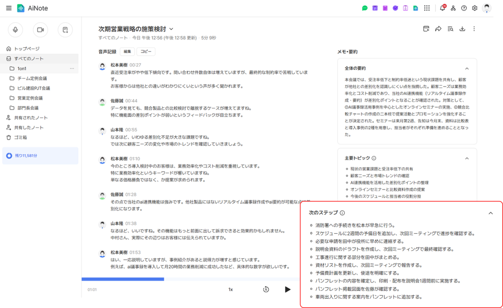 会議後のToDo整理がスムーズに。AI要約に「次のステップ」を追加