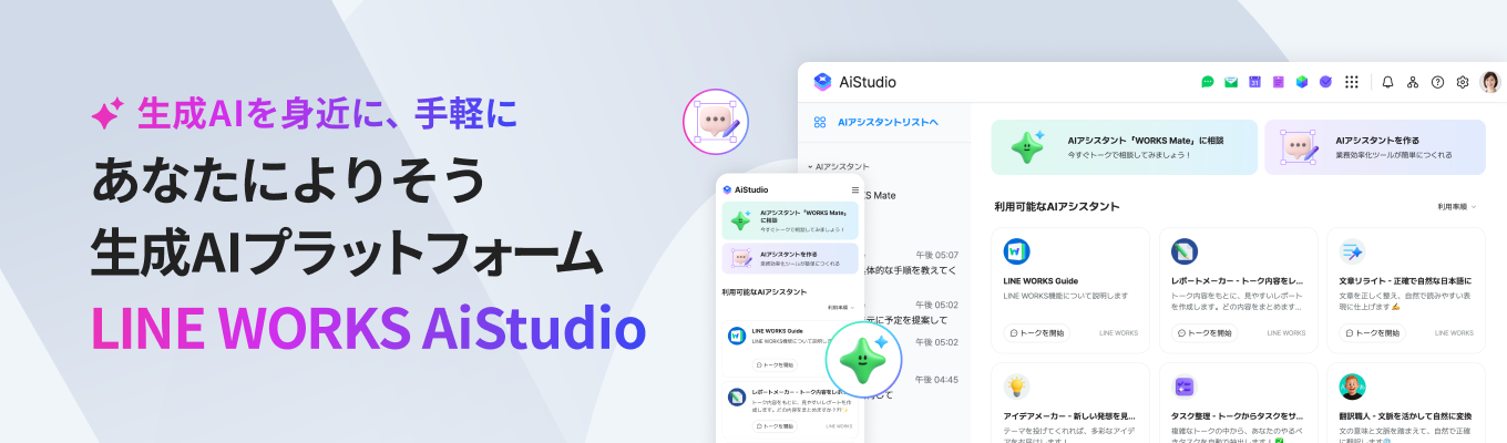 生成AIを身近に、手軽に、LINE WORKS AiStudioで、日々の業務をもっとスマートに進化させましょう!