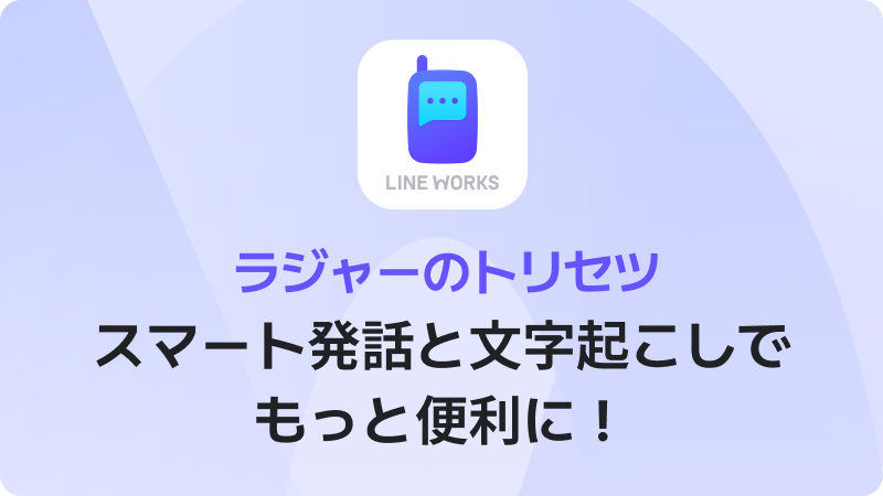 BLOG LINE WORKSチームがお届けする情報ブログです。 すべて 活用事例 連携サービス 機能紹介 イベント 働き方改革 コーポレート Menu すべて 活用事例 連携サービス 機能紹介 イベント 働き方改革 コーポレート roger ラジャー ラジャー ラジャーのトリセツ|スマート発話と文字起こしでもっと便利に! はじめに LINE WORKSラジャーは、音声AI技術で現場のコミュニケーションを支援するトランシーバーアプリです。 これから使い始める方にも、すでにご利用中の 2025.10.29 ラジャー ラジャーのトリセツ|対応デバイスの選び方 はじめに LINE WORKSラジャーを使い始めた皆さまからよく聞かれるのが、「どんなイヤホンを使えばいいの?」というご質問です。 ラジャーは幅広いデバイスに対 2025.10.29 ラジャー ラジャーのトリセツ|会話の始め方と設定 はじめに LINE WORKSラジャーは、音声AI技術で現場のコミュニケーションを支援するトランシーバーアプリです。 本記事では、ラジャーの話し方に関する2つの 2025.10.29 ラジャー ラジャーのトリセツ|初期設定ガイド -ユーザー編- はじめに LINE WORKSラジャーは、音声AI技術で現場のコミュニケーションを支援するトランシーバーアプリです。 管理者から招待後されサービスを開始する方に 2025.10.29 ラジャー ラジャーのトリセツ|初期設定ガイド -管理者編- はじめに LINE WORKSラジャーは、音声AI技術で現場のコミュニケーションを支援するトランシーバーアプリです。 これからラジャーを使い始める管理者の方に向 2025.10.29 ラジャー LINE WORKS ラジャー メジャーアップデート特集!(v1.1) “スマホでトランシーバー”として、現場とオフィスをシームレスにつなぐ LINE WORKSラジャー は、2月のデビュー以来「距離を超えて、どこでも現場同士がつな 2025.07.24 もっと見る 6 6