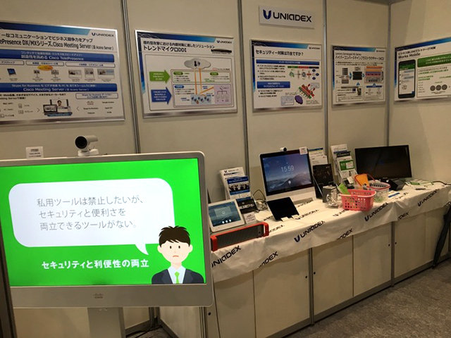 また、展示会場では、弊社販売パートナーであるユニアデックス様のブースにてWorks Mobileをご紹介いただきました。多数の方に足を運んでいただき、Works Mobileを実際に体験していただきました。