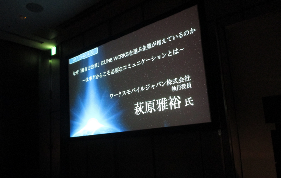 弊社も講演プログラムに参加しまして、弊社のプロダクトマーケティング 執行役員 萩原が登壇し、「働き方改革」にLINE WORKSを選ぶ企業が増えている理由についてお話をさせていただきました。