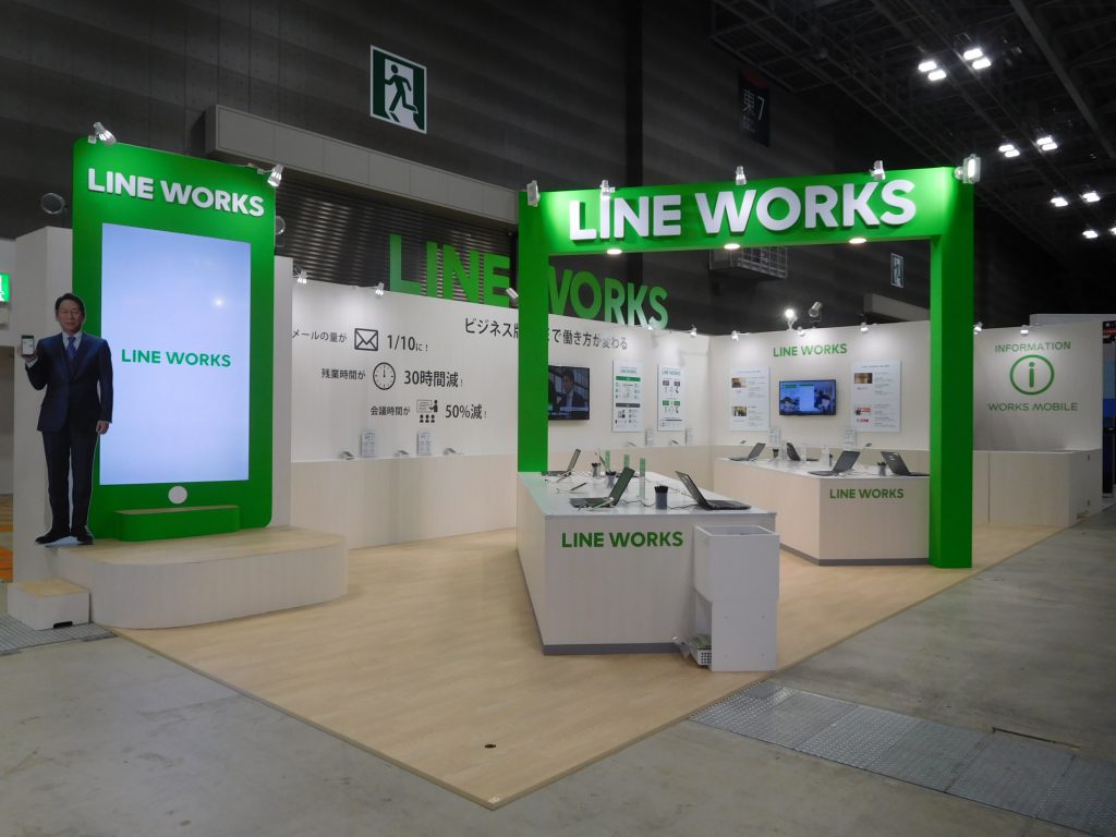 「LINE WORKS」のブースでは時間や場所にとらわれない働き方をテーマに仕事時間を減らして生産性を高めるために必要なビジネスコミュニケーションをお伝えしました。