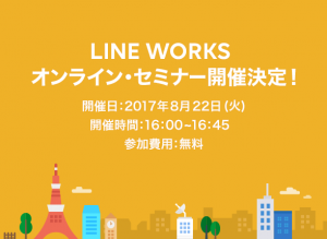 2017年8月22日 (火)16:00より、「LINE WORKS」オンラインセミナーを開催いたします。