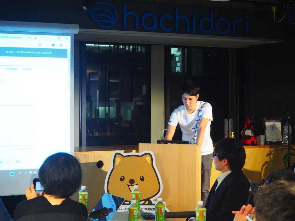 次のセッションは、今回の会場を貸してくださったhachidori株式会社の濱田さんより、ノンコーディングでbotを作れるチャットボールツール「hachidori plus」を使って、5分で作れるLINE WORKS FAQ botのデモが行われました!!