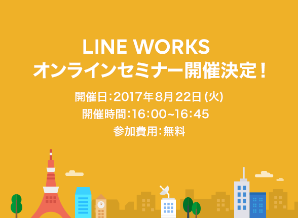 2017年10月25日 (水)、11月1日(水)それぞれ16:00より、「LINE WORKS」オンラインセミナーを開催いたします。