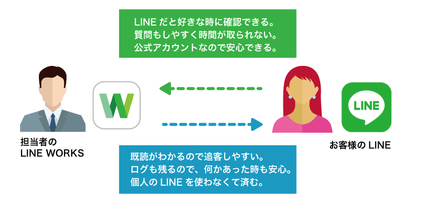 LINE WORKSは、取引先や委託先の企業など、日常的に発生する社外との連絡にご利用いただけます。外部企業の担当者がすでに利用しているLINEに友だち登録してもらうことで、テキストはもちろん、画像などの添付ファイルも送ることができます。QRコードなどで友達登録してもらえれば、簡単にはじめることができます。