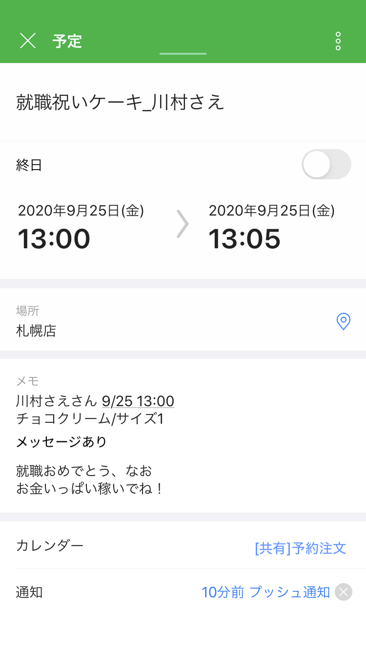 カレンダーに注文情報を登録