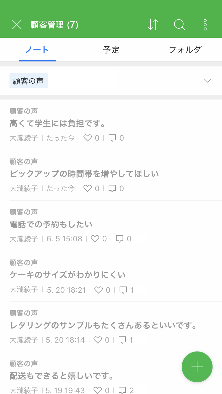 また、サービス改善のための顧客の声をグループノートに集めておくと、いつでもどこでも参照できます。