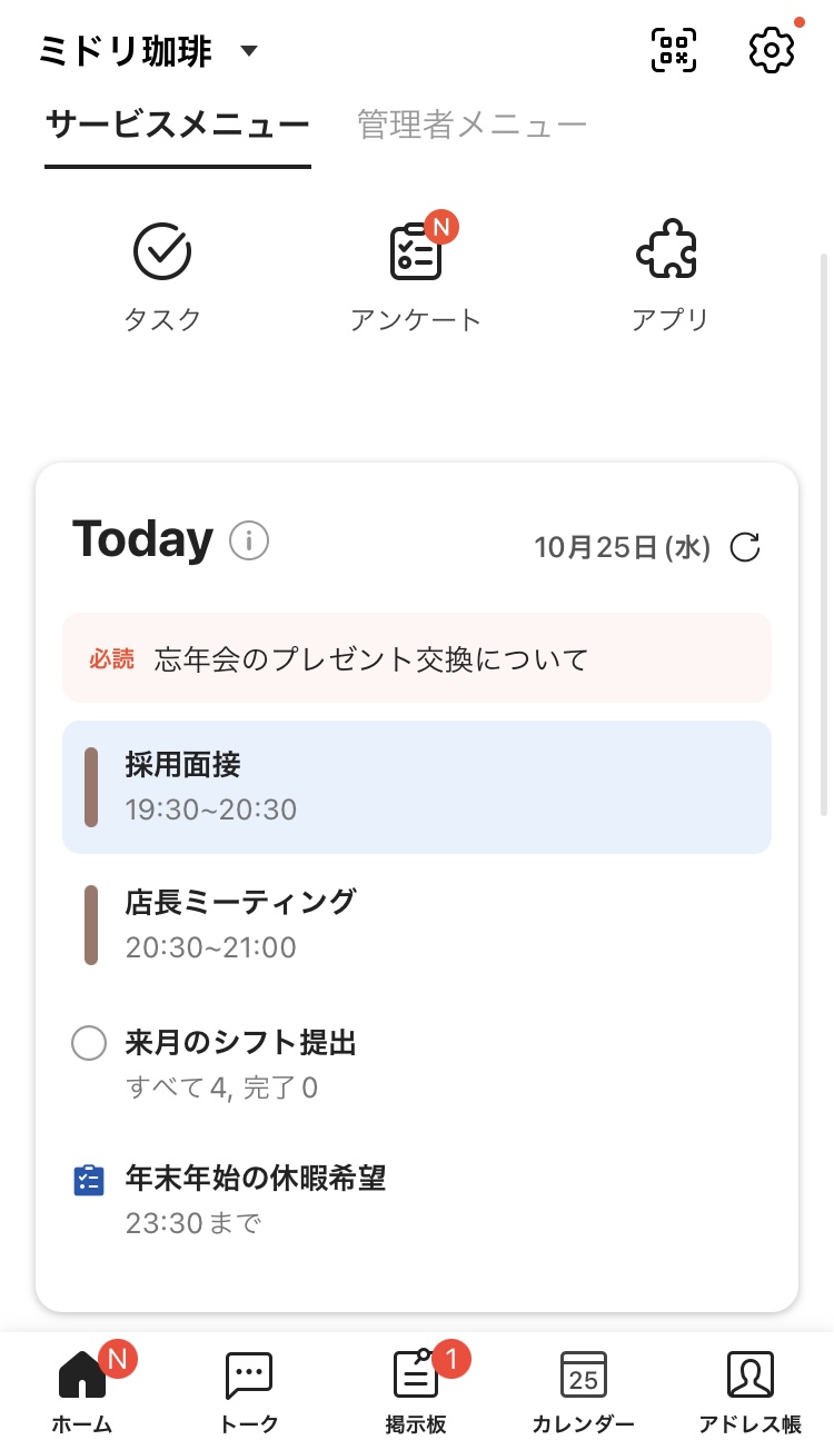1日の仕事が始まったらまずここをチェック! その日に対応が必要な、以下の情報を確認することができます。