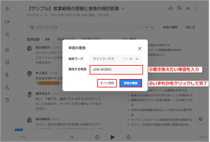 文字起こしでうまく認識できなかった単語や専門用語は、「単語の置換」機能を活用して正しい単語に置き換えましょう。