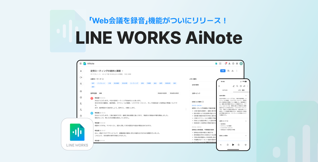 2024年11月にリリースされた音声文字起こしサービス”LINE WORKS AiNote”。