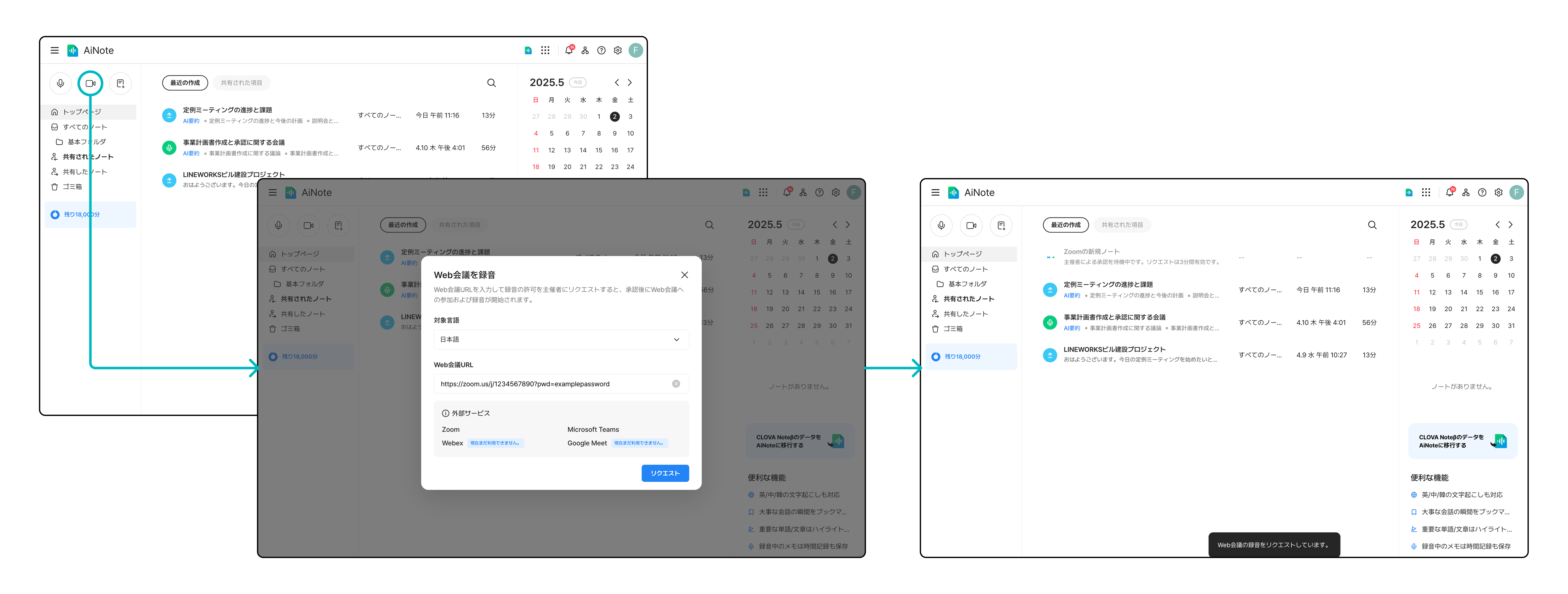 - 4. AiNoteボットの参加を承認すると録音開始