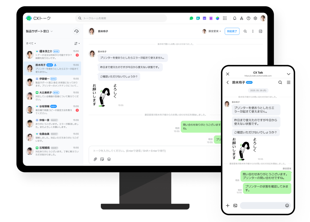 また、「CXトーク」は LINE WORKS のモバイル版アプリ (iOS/Android) でもブラウザ版でもご利用いただけます。