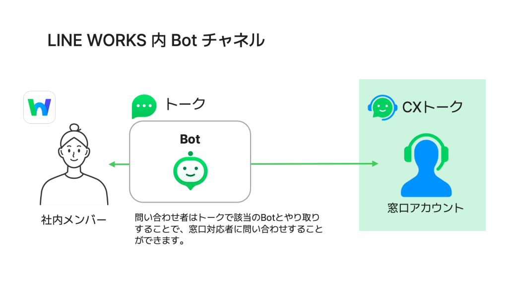 「CXトーク」は、ご利用する窓口アカウントの数だけライセンスを購入いただく商品となります。LINE WORKS のメンバー数に応じた課金ではありません。