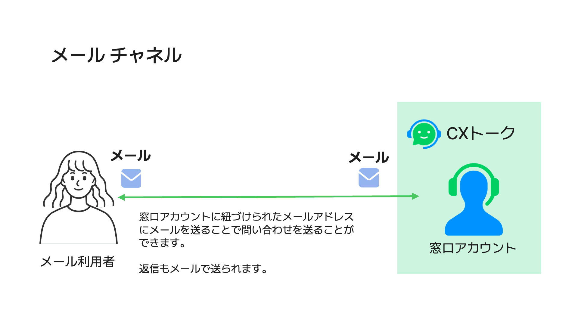 問い合わせをメールを通して受けられるチャネルです。メールで受けている問い合わせ対応にお使いいただけます。