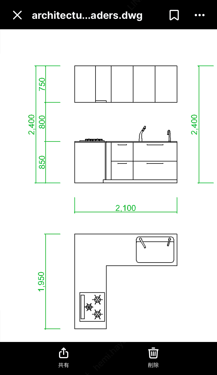 .dwgファイルプレビュー画面(Driveアプリ)