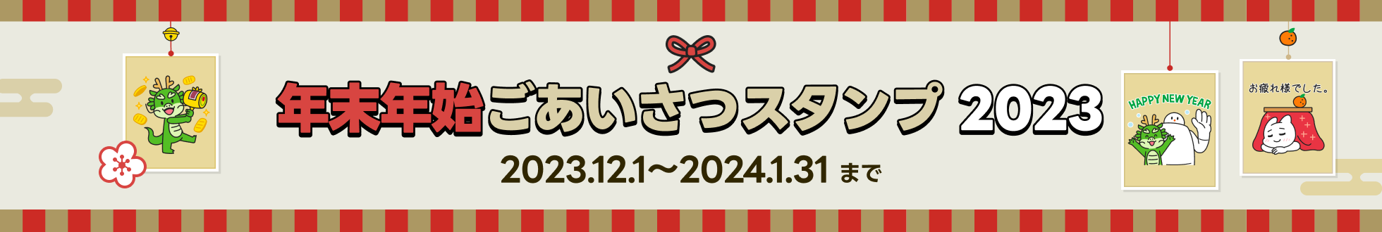 今年は、昨年好評だったスタンプに加え、来年の干支である辰(タツ)をモチーフにしたオリジナルイラストを追加しています。