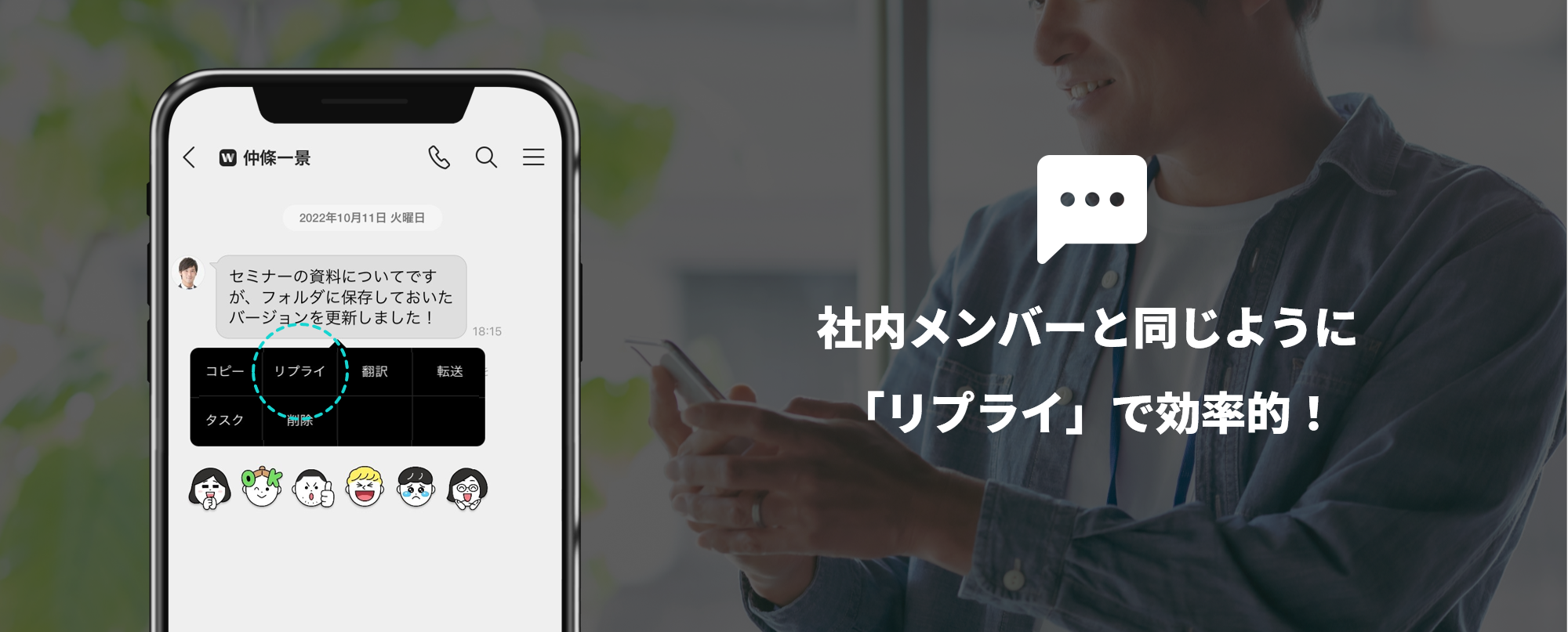 特定のトークを引用して返信を作成できる機能として活躍しているリプライ機能ですが、これまで外部LINE WORKS連携では利用できませんでした。お互いLINE WORKSユーザーにも関わらず急にリプライ機能が使えなくて不便という声もありましたが、今回のアップデートにより社内と同じように返信が可能となります。