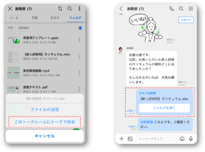 ファイルはトークルームに直接送信することもできますが、頻繫にやりとりが行われるトークルームだと情報が流れてしまい、あとから資料や画像を探す際に手間や時間がかかってしまいます。 グループフォルダはフォルダごとにプロジェクト名や用途、取引先などで分類すると、情報の整理整頓ができ、共有する場合にも便利です。