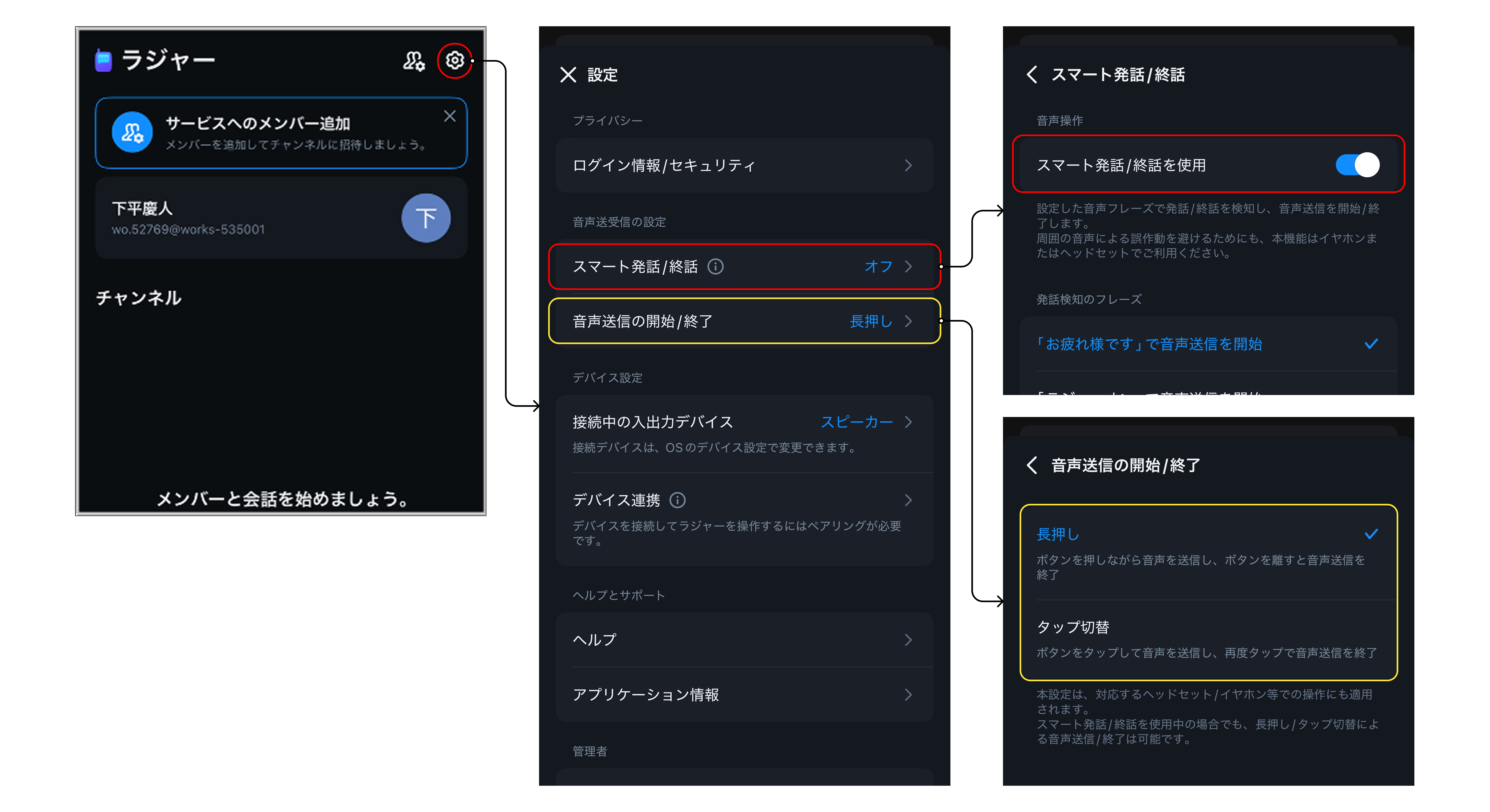ラジャーの音声送信方法は3種類あります。