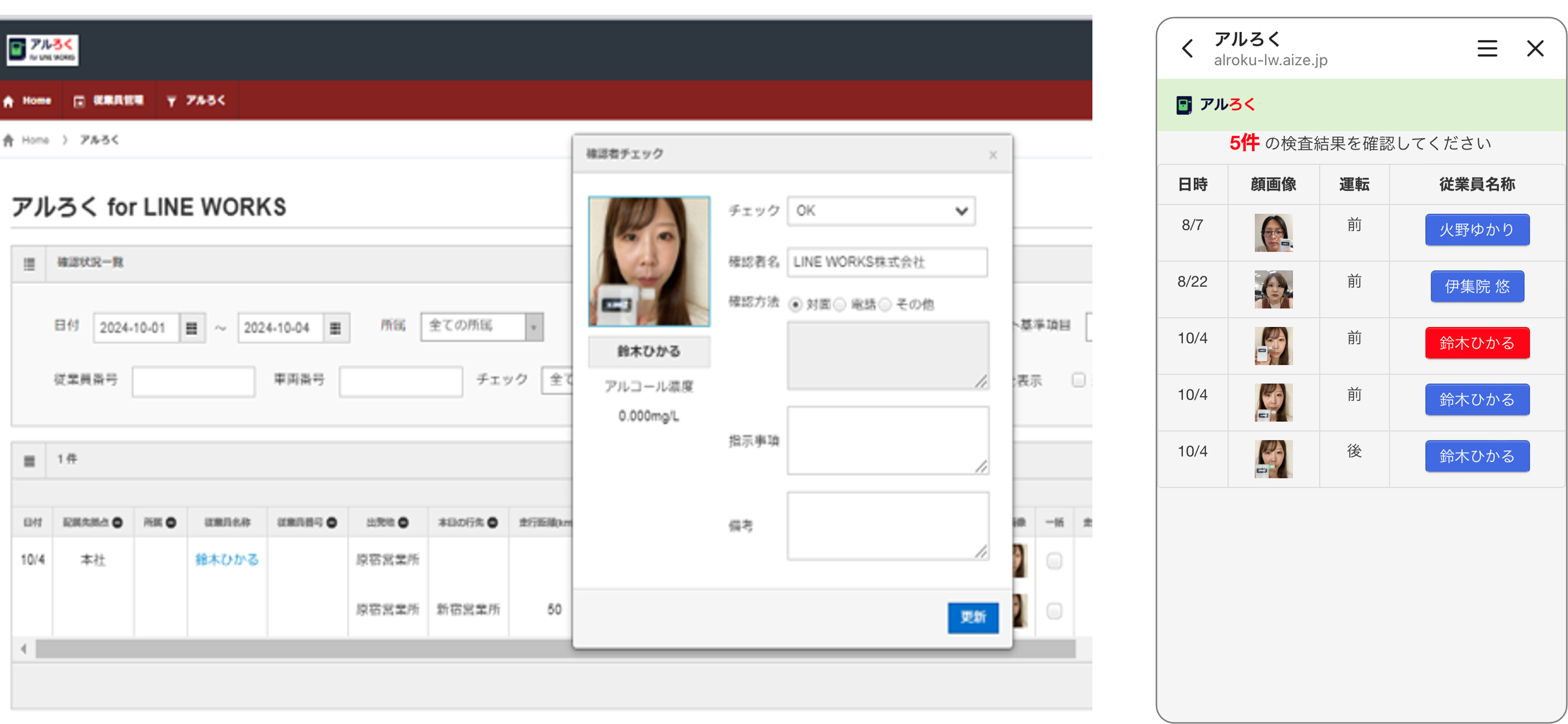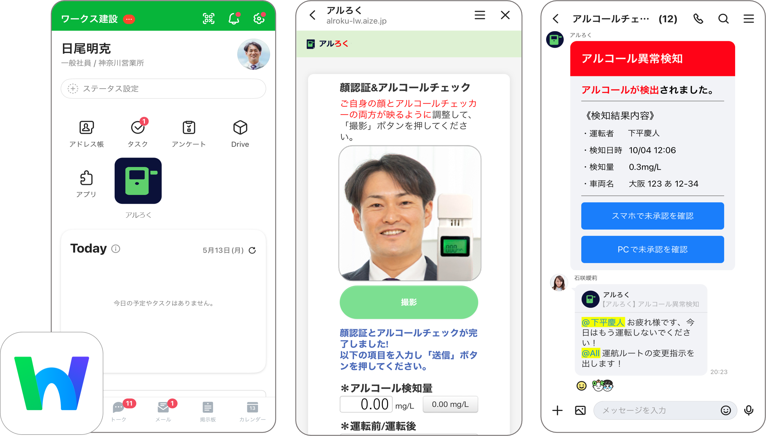 LINE WORKS上でアルコールチェックが完結!「アルろく for LINE WORKS」