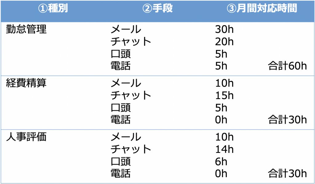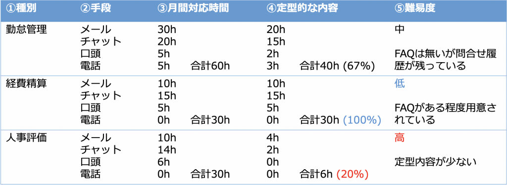 たとえば人事・労務部に来る問い合わせを一例に挙げれば、このような形になるでしょうか。