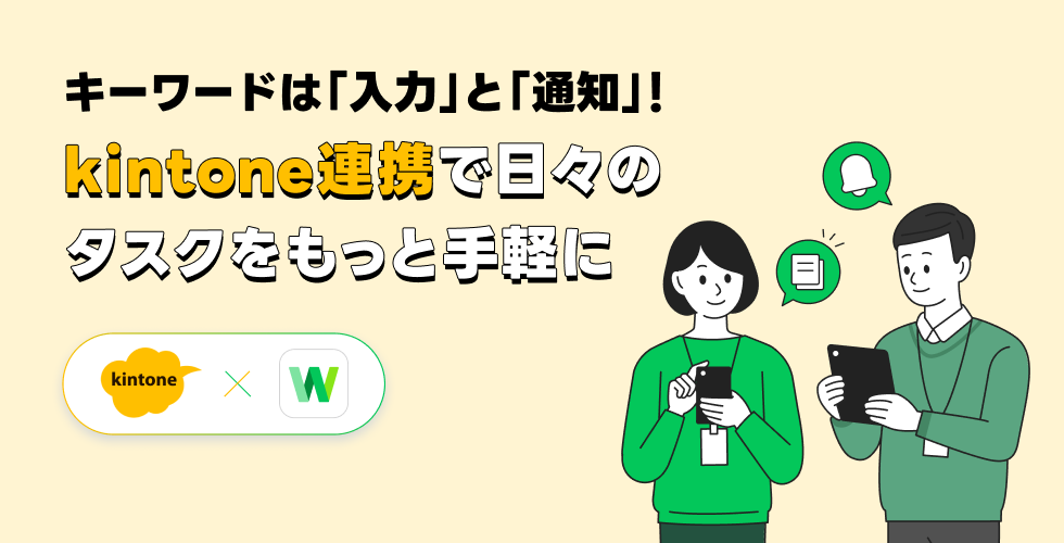 本記事では、ノーコードで業務のシステム化ができる kintone を LINE WORKS と連携させて、日々の業務をもっと手軽にできる方法をご紹介します。