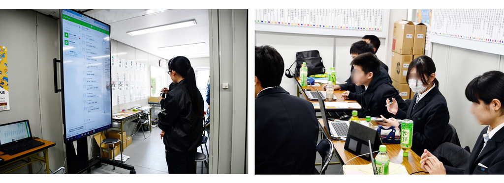 試合当日、スコア速報をリアルタイム掲出を実施しましたが、その実務を担当していたのはなんと現役の高校生!柳川高等学校マイクロソフトコースの皆さんは、スコア係からLINE WORKS上で最新のスコア数値の報告を受けそれをデータ化、60インチの巨大モニターを介して複数人でチェック業務をこなし、アプリやWebサイト上に常に最新のスコアを掲出しました。高校生ながら最新のITソリューションを駆使し実務をこなす姿、驚きです!