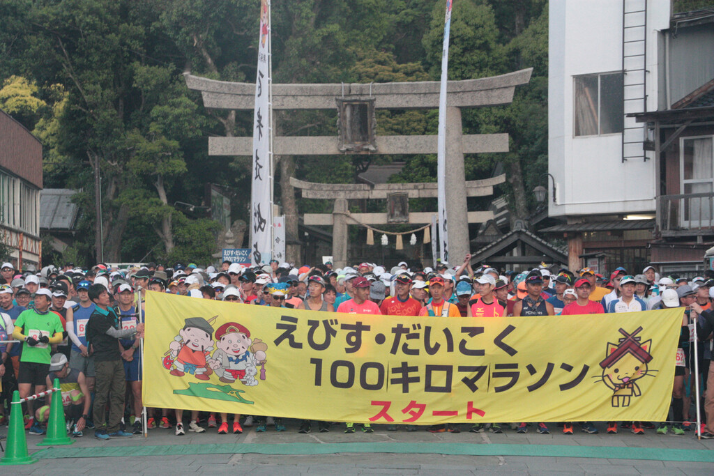 美保神社前~出雲大社前の全長約100kmを14時間以内に走破するウルトラマラソンの大会で、島根半島の自然・景観の素晴らしさを全国のランナーに伝えようと、地域の有志の方々が独自に実行委員会を立ち上げ毎年開催しています。今回の大会は、実行委員会のメンバー約50名と当日ボランティアスタッフ約700名にて実施されました。