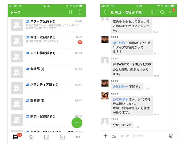 以前はFacebookメッセンジャーや個人のLINE、またメールや電話などそれぞれの方法で個別に連絡を取っていたそうですが、LINE WORKSを基盤としてから組織的なコミュニケーションや情報共有が可能になりメンバーそれぞれが大会の全体的な動きまで把握できるようになったそうです。