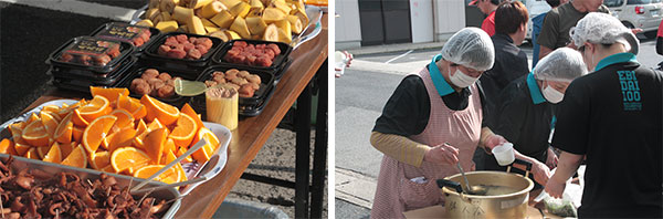 「えびす・だいこく100kmマラソン」の魅力の一つは、地元の方々の温かい心使いと島根ならではの美味しいものが振舞われるエイドステーションです。